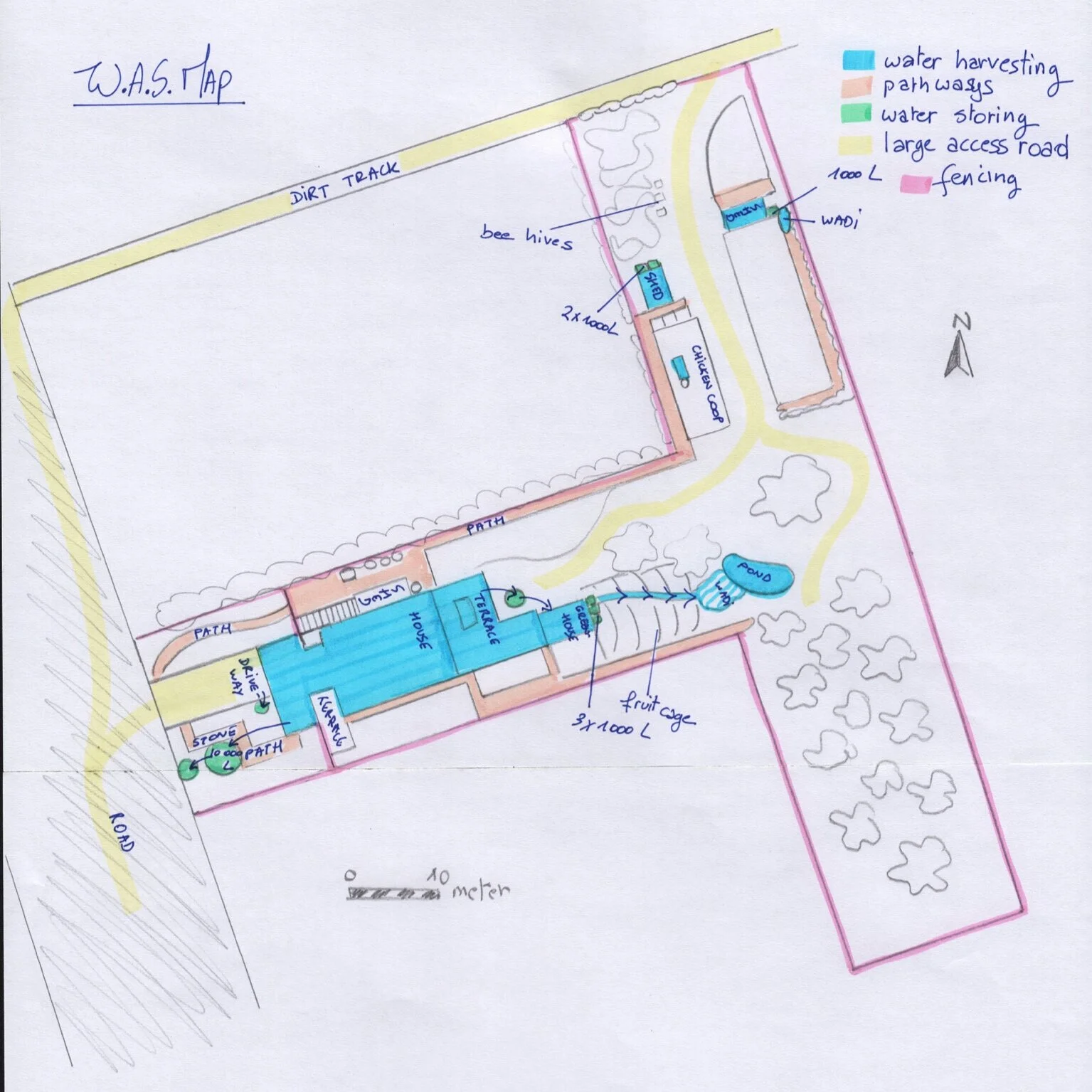 Welk water gaan we opslaan en hoe? Welke vaste structuren zijn er aanwezig op het perceel? Waar bevinden zich de toegangswegen?